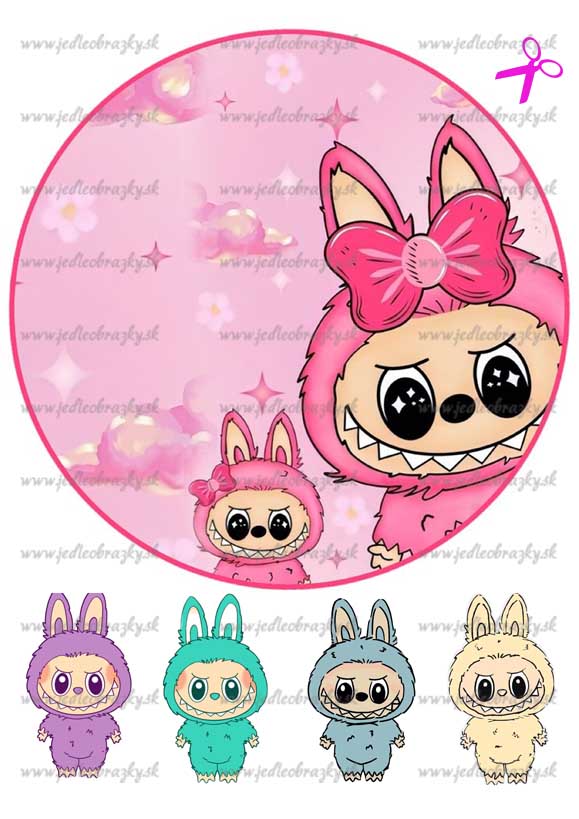 Úvod »Labubu» Jedlý obrázok Labubu ružový – kruh + postavičky