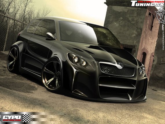 • Hlavný obrázok: čierne tuningové auto s agresívnym športovým vzhľadom.