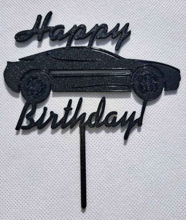 • Elegantný dizajn športového auta s nápisom "Happy Birthday", ideálny na oslavy narodenín.