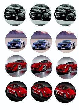 Úvod »Autá, Stroje» Jedlý obrázok športové autá – sada 12 ks na muffiny