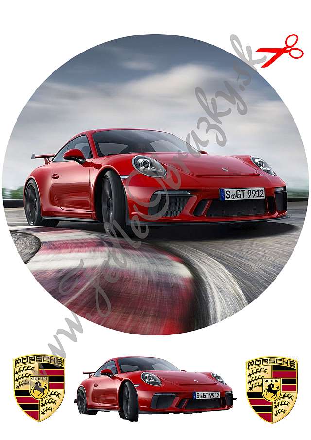 Jedlý obrázok Porsche je ideálnou tortovou dekoráciou pre fanúšikov rýchlych áut a legendárnej značky Porsche.